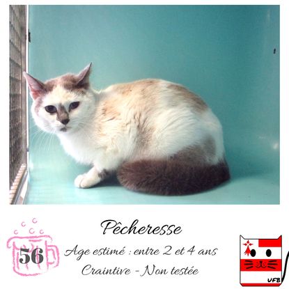 URGENCE EUTHANASIE ! Pêcheresse est une femelle de 2-4 ans craintive (un comportement normal en fourrière) qui vous attend dans une fourrière du 56. ATTENTION SORTIE AU PLUS TARD LE 28/05/2021 (avant euthanasie) ! Pour adopter, c'est facile : ➡️ On se rend sur la page facebook d'Urgence Fourrière de Bretagne (UFB) -> https://www.facebook.com/sosfourrieresbreizh/ ➡️ On vient en message privé sur la page UFB ➡️ On remplit le questionnaire ➡️ Si le questionnaire est validé, on se rend disponible pour la pré-visite ➡️ On se rend aussi disponible pour venir chercher le loulou en fourrière Les chats sortent de fourrière primo-vaccinés et identifiés. Restera à charge de l’adoptant le rappel de vaccin et la stérilisation qui est OBLIGATOIRE. Les femelles en fourrière ayant été trouvées dans la rue, il y a fort à parier que nombre d'entre elles en âge de l'être soient gestantes ... ---- A PROPOS D'URGENCE FOURRIERE DE BRETAGNE (UFB) Nous sommes un COLLECTIF d'ASSOCIATIONS DE PROTECTION ANIMALE (qui rassemble notamment Moustaches et Compagnie, Bêtes de Scène, les Pachas, Chats Libres de Berné, etc, etc....) Le BUT de ce collectif d'associations est donc de SORTIR ces animaux des fourrières surchargées en les faisant ADOPTER de manière LEGALE par des familles ou en leur trouvant des FAMILLES D'ACCUEIL lorsque des places en association se libèrent.